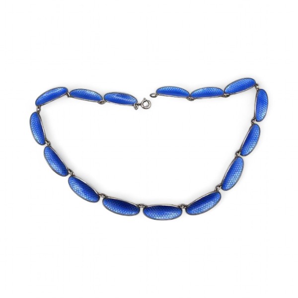 Norway DA David Andersen Guilloche Enamel Sterling Silver Blue Leaf Necklace 23.8 G