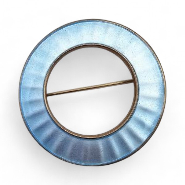 Norway Einar Modahl Guilloche Enamel Sterling Silver Blue Circle Brooch 8 G