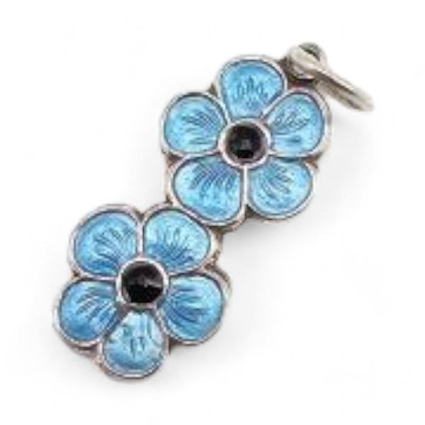 Denmark MEKA Guilloche Enamel Sterling Silver Floral Charm 1.2 G