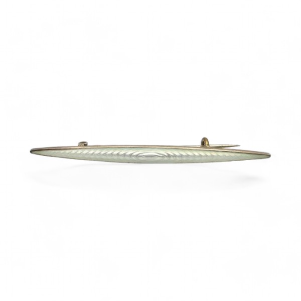 NE Guilloche Enamel Sterling Silver White Bar Pin 3.1 G