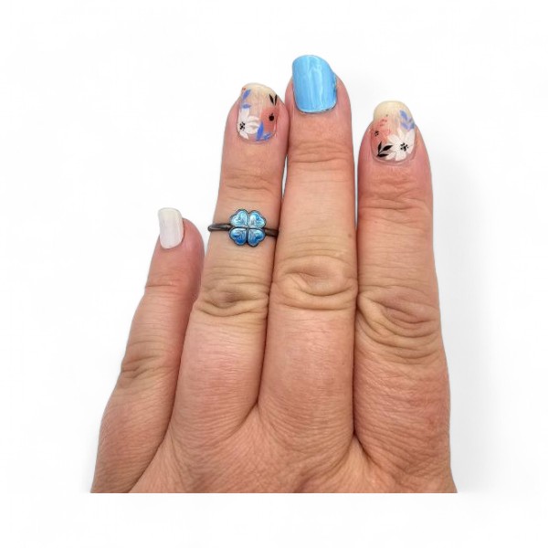 Denmark MEKA Guilloche Enamel Sterling Silver Flower Ring Sz. 5, 1.1 G