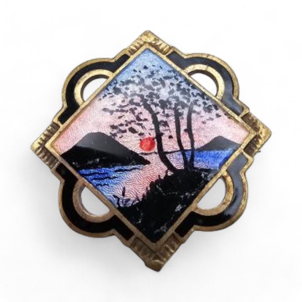 Norway Aksel Holmsen Guilloche Enamel Sterling Silver Beach Theme Brooch 4.9 G