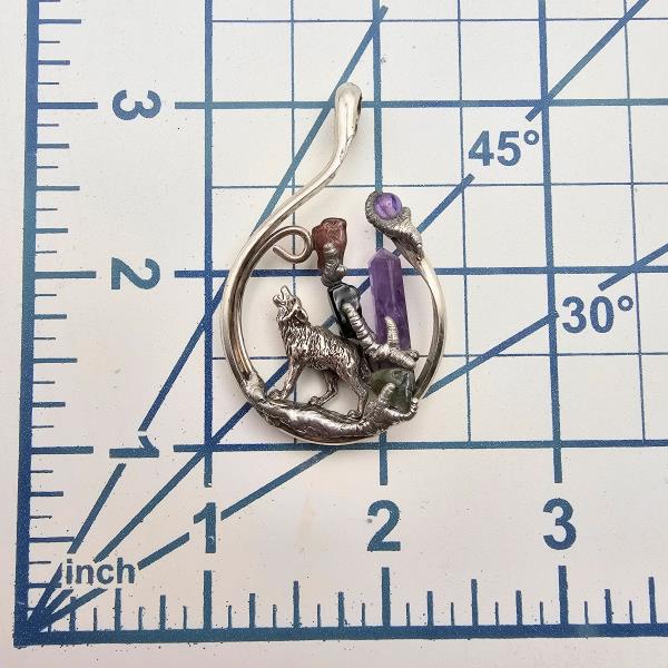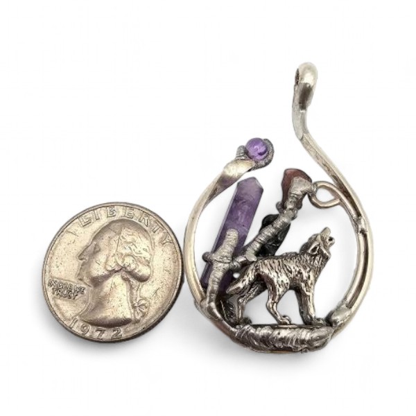 Amethyst Quartz Sterling Silver Wolf Spirit Guide Pendant 13.6 G