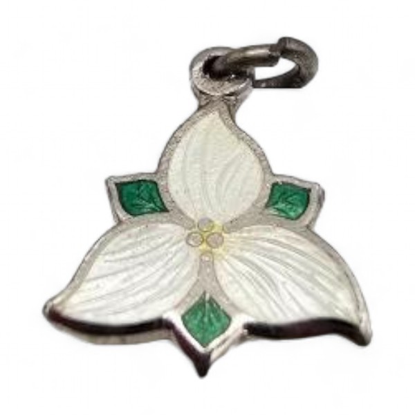 BM Co Guilloche Enamel Sterling Silver Flower Pendant 1.2 G