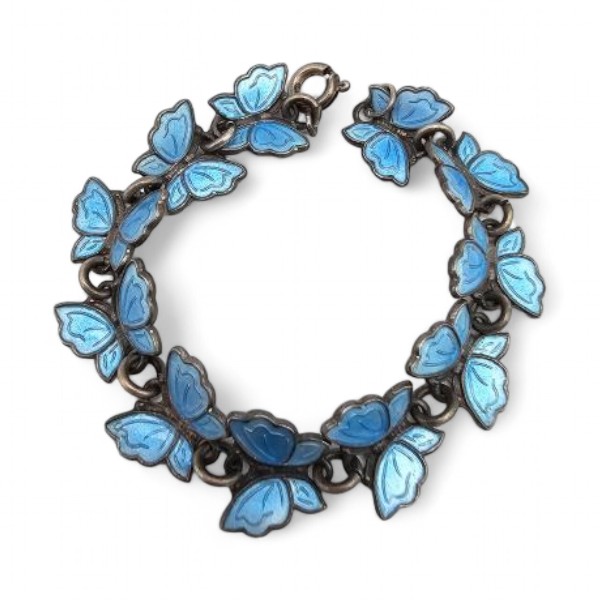 Denmark MEKA Guilloche Enamel Sterling Silver Blue Butterfly Bracelet 7 G