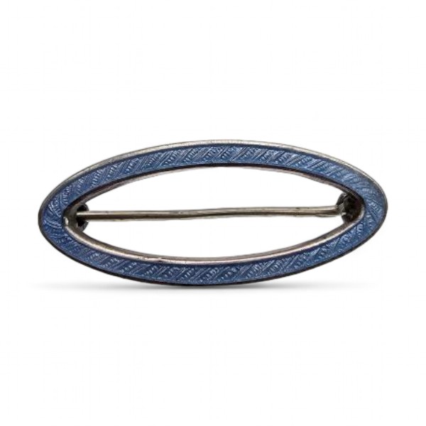 H Guilloche Enamel Sterling Silver Blue Oval Brooch 2.1 G