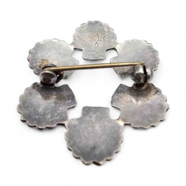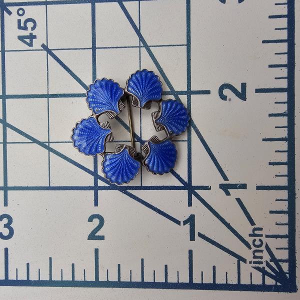 Denmark VB Volmer Bahners Guilloche Enamel Sterling Silver Blue Seashell Circle Brooch 5 G