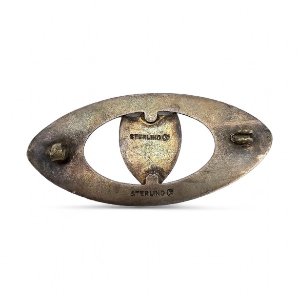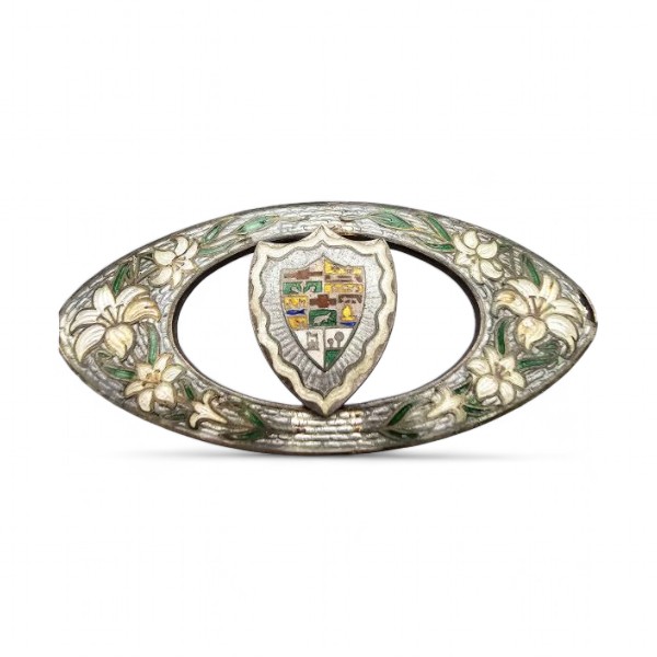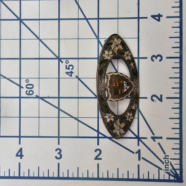 Vintage Cloisonne Enamel Sterling Silver Lily Shield Oval Brooch 14.8 G As Is no pin back