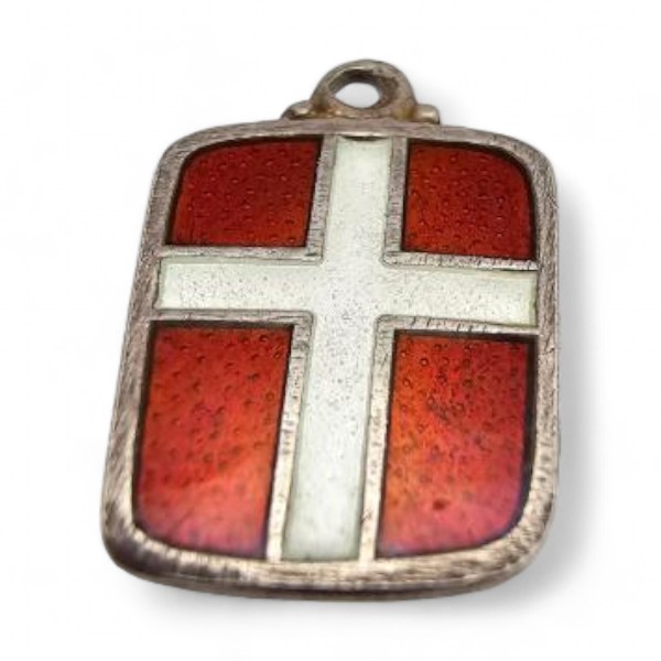Denmark MEKA Guilloche Enamel Sterling Silver Flag Charm 1.4 G