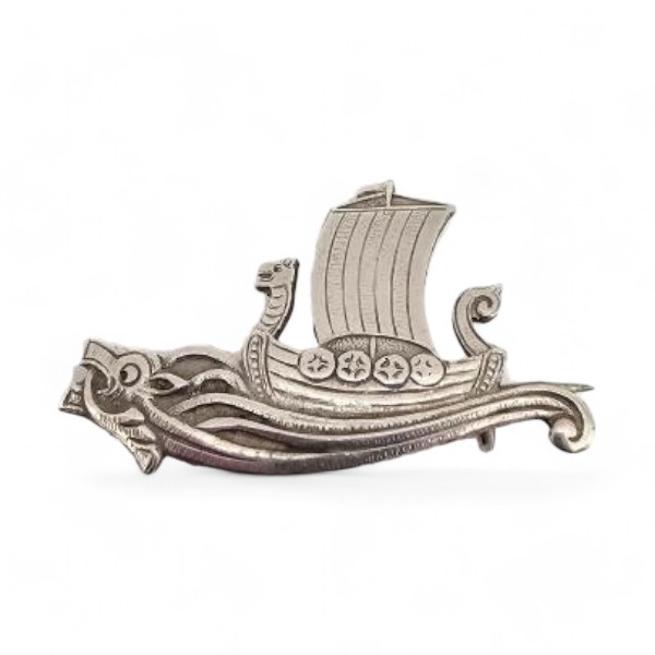 Norway Kristian M Hestenes Sterling Silver Viking Ship Brooch 2.7 G