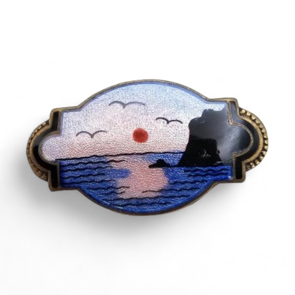 Norway Norne Guilloche Enamel Sterling Silver Brooch 3.8 G