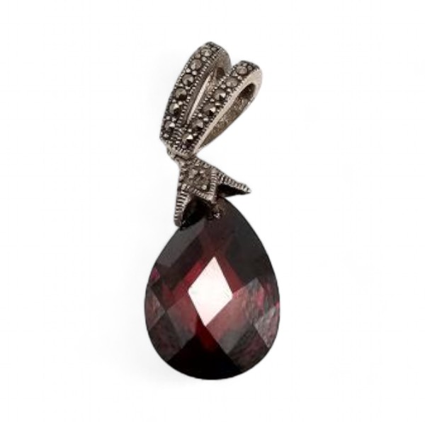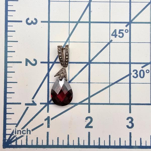 Marcasite Rhinestone Sterling Silver Drop Pendant 5.7 G