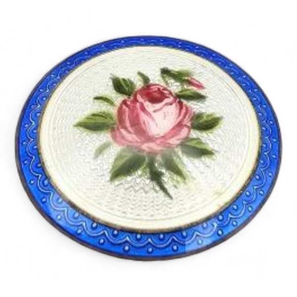 WTW Guilloche Enamel Sterling Silver Rose Brooch 4.2 G