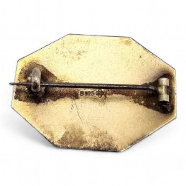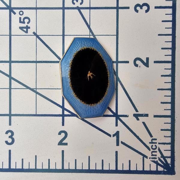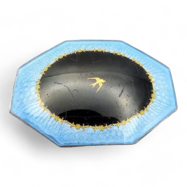 Signed Vintage Guilloche Enamel Sterling Silver Blue Black Gold Bird Brooch 9.5 G