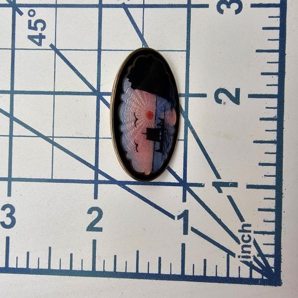 SK Guilloche Enamel Sterling Silver Ocean Scene Brooch 7.7 G