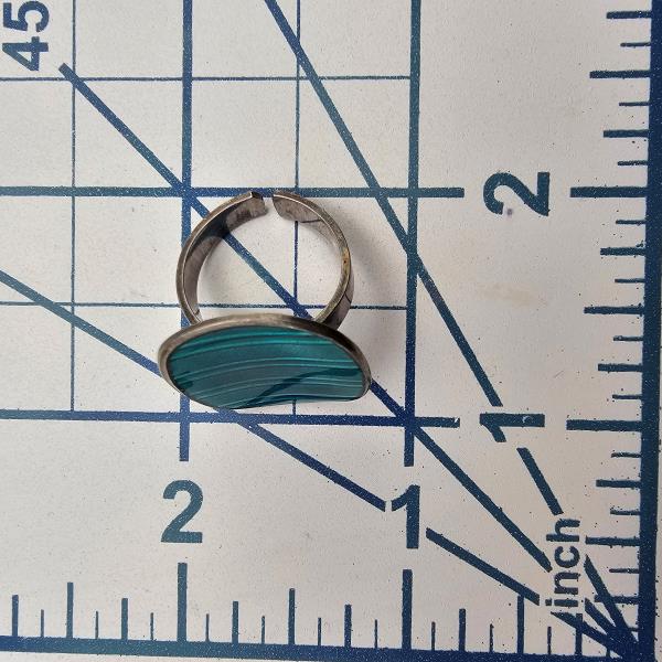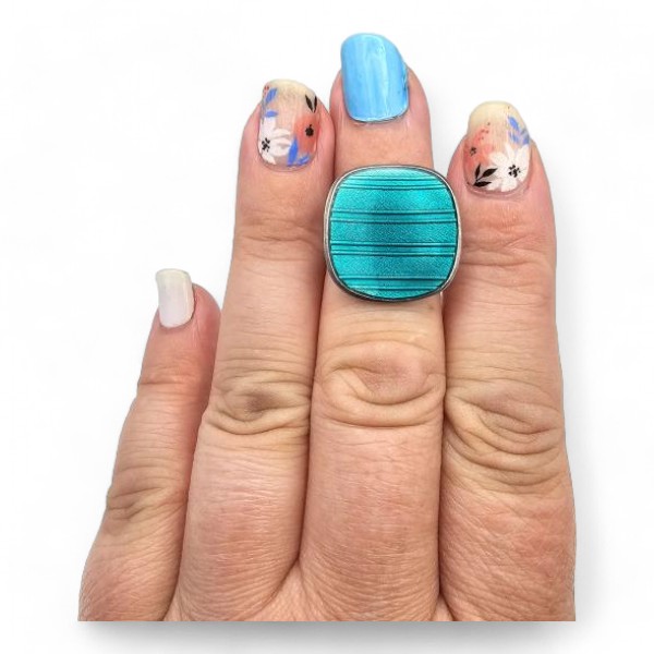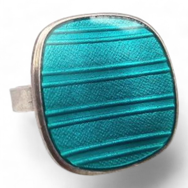 Norway Aksel Holmsen Guilloche Enamel Sterling Silver Teal Adjustable Ring 5.5 G