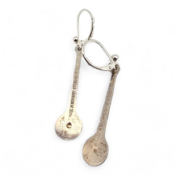 Norway Aksel Holmsen Guilloche Enamel Sterling Silver Drop Dangle Earrings 4.3 G