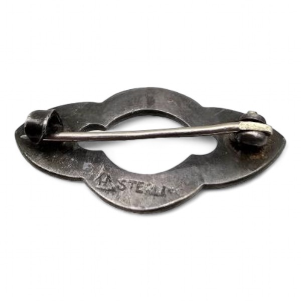 H Guilloche Enamel Sterling Silver Blue White Floral Brooch 2.1 G