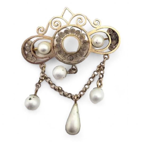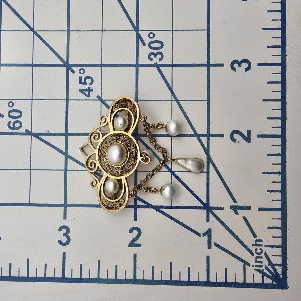 Vintage Pearl Filigree Sterling Silver Dangle Wedding Brooch 8.2 G