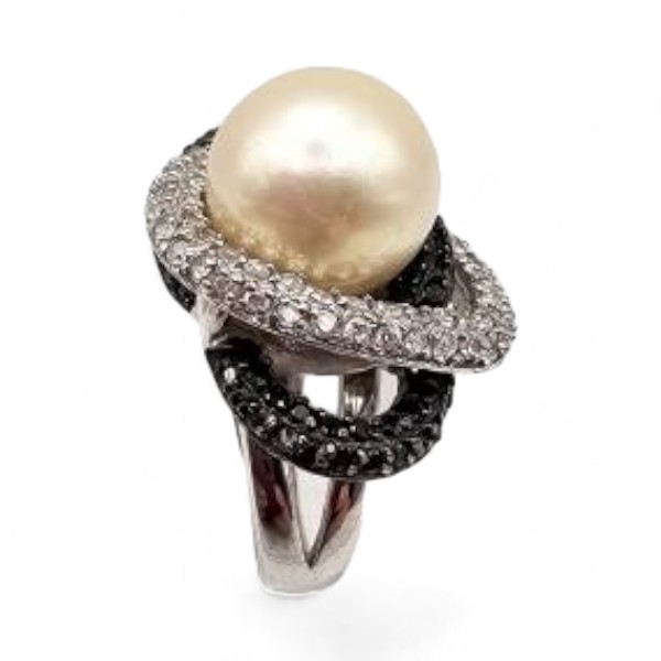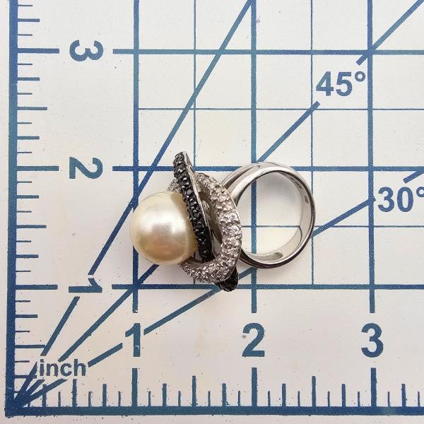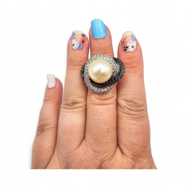 Signed Cubic Zirconia Pearl Sterling Silver Cocktail Ring Sz. 7, 13.2 G