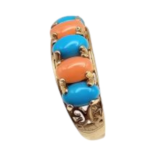 EA East Arts Jewelry Coral Turquoise 14K Gold Cocktail Ring Sz. 6.75, 3.5 G
