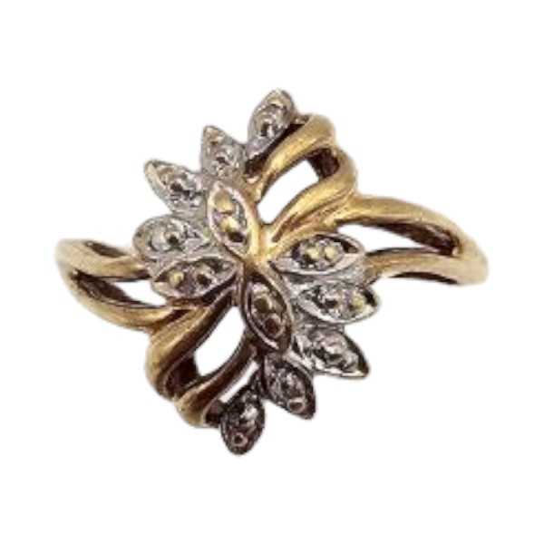 Magic Glo Diamond 10K Gold Cocktail Ring Sz. 7.25, 1.8 G