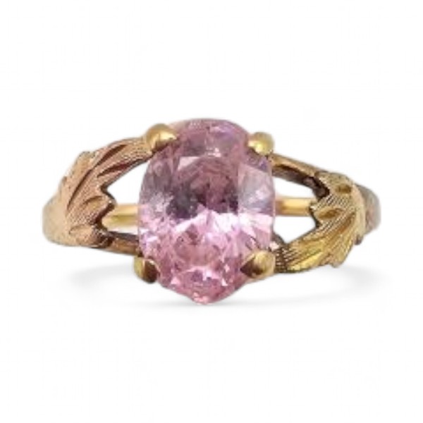 Pink Gemstone 10K Gold Cocktail Ring Sz. 3.5, 1.2 G