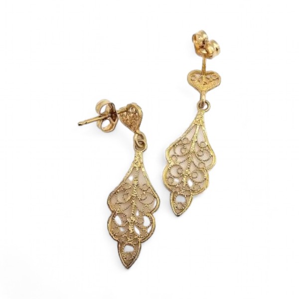 Signed 14K Gold Swirl Drop Dangle Earrings 1.5 G