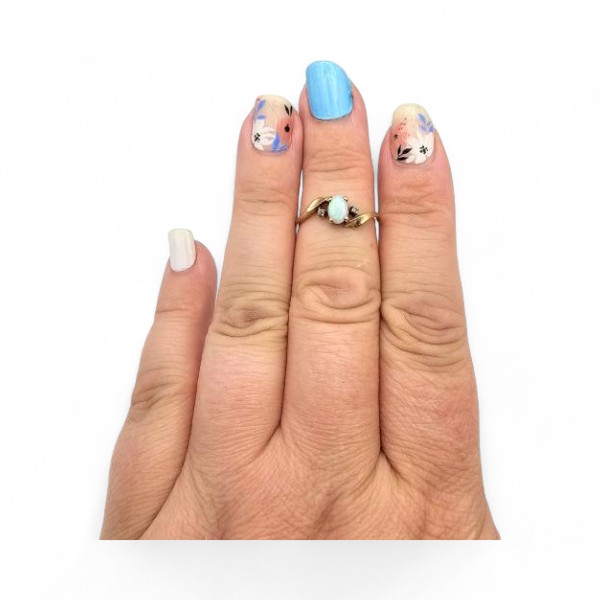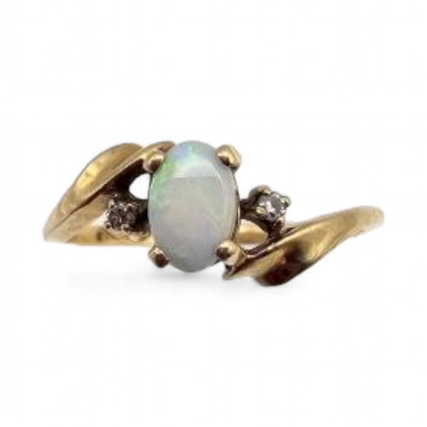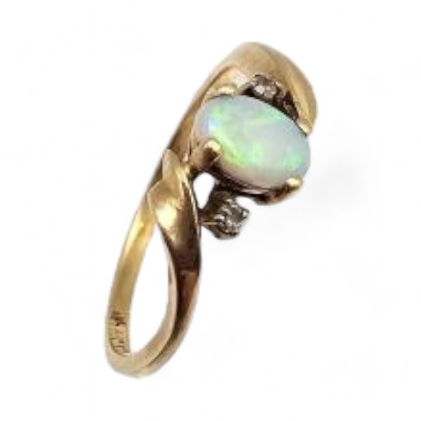 Signed White Sapphire Opal 10K Gold Cocktail Ring Sz. 6.25, 1.4 G