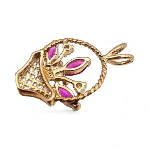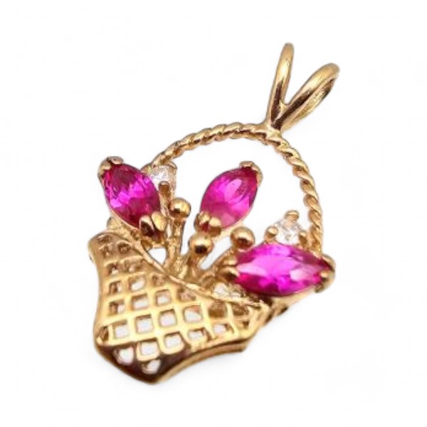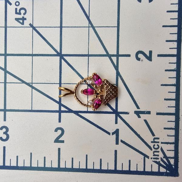 Tourmaline 10K Gold Flower Basket Pendant 1.9 G