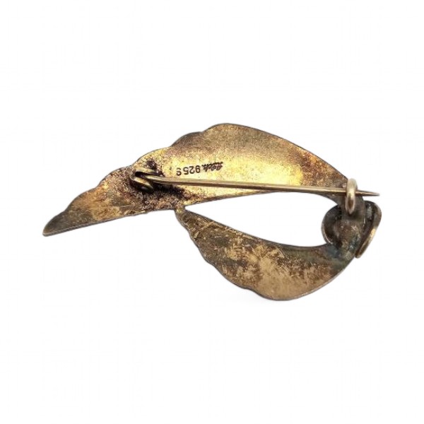 Norway ALch Guilloche Enamel Sterling Silver Blue Swoop Brooch 6.5 G