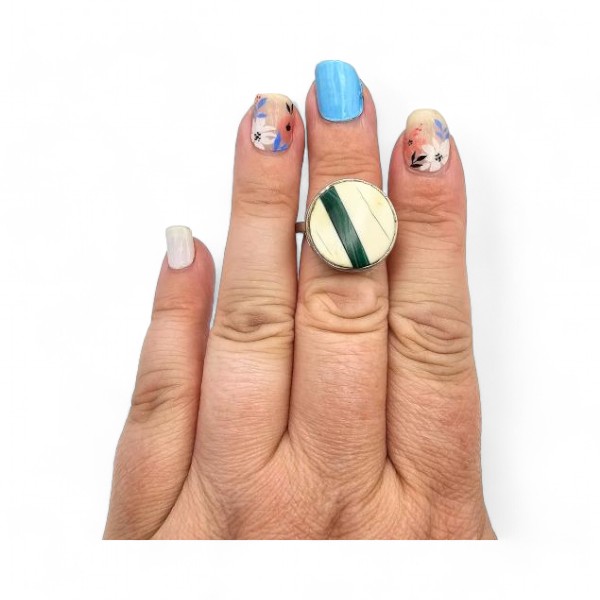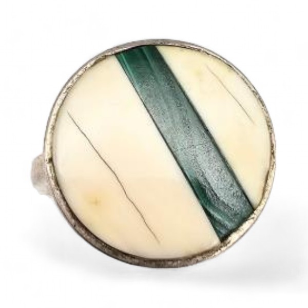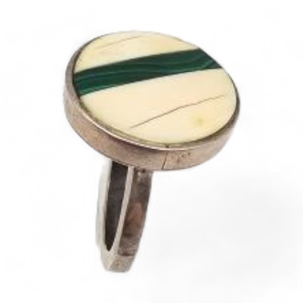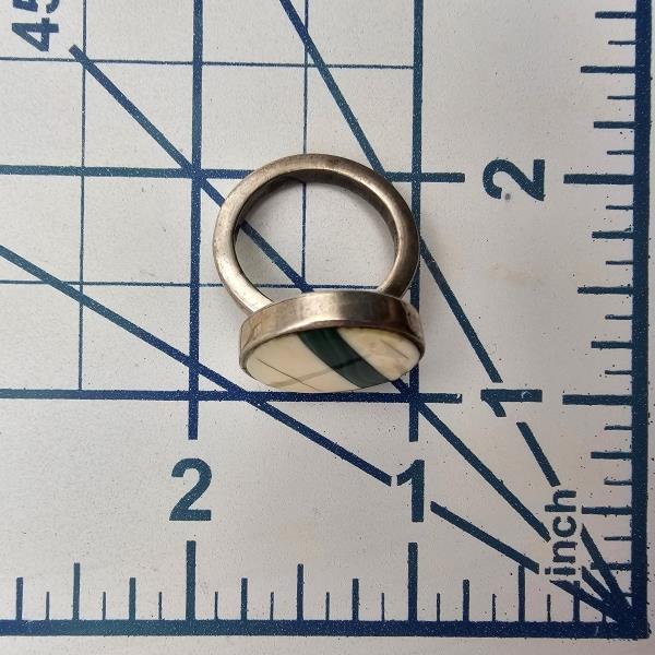 Vintage Malachite Bone Sterling Silver Ring Sz. 6.25, 7.6 G