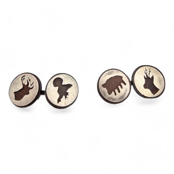 930 Silver Vintage Stamp Work Deer Buck Turkey Game Hunter Cufflinks 6.3 G