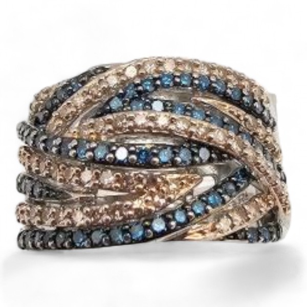 Diamond Sterling Silver Cocktail Ring Sz. 7.5, 7.7 G