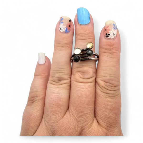 Cat Eye Sterling Silver Modernist Ring Sz. 8.5, 5 G as is missing two Stones