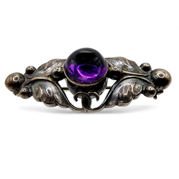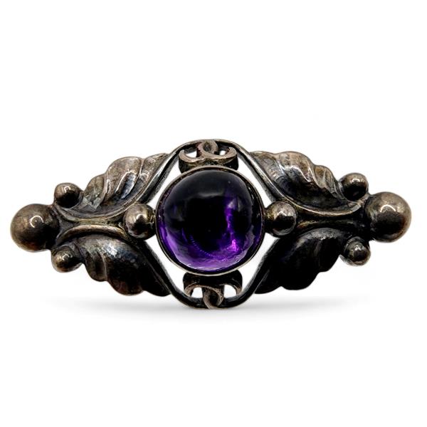 Vintage Georg Jensen Denmark #224a Amethyst Brooch 4.2g