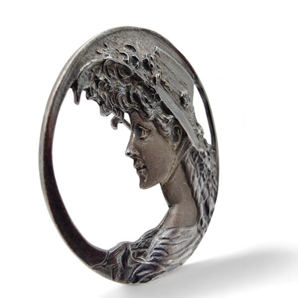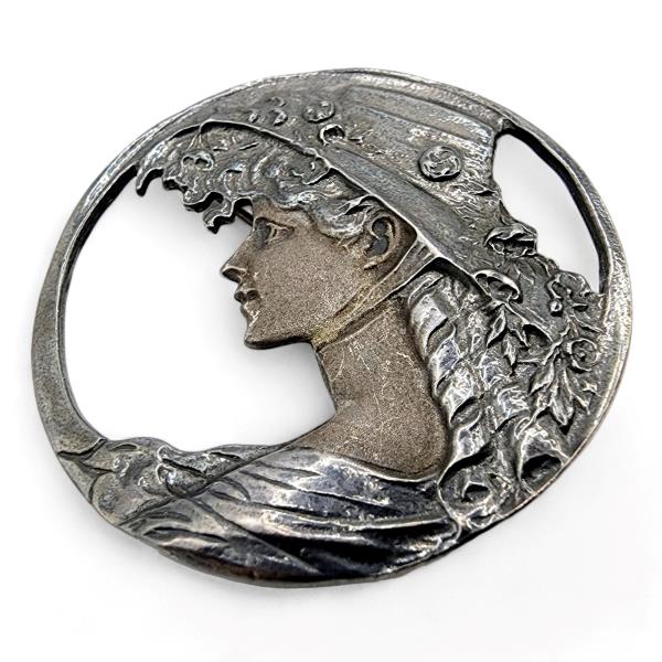 Vintage England Ari D Norman Sterling Art Nouveau Victorian Lady Brooch 9.4g