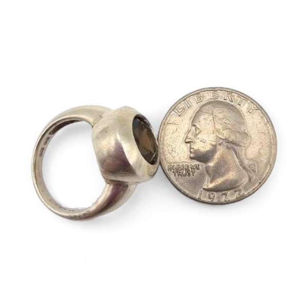 Smoky Quartz Sterling Silver Cocktail Ring Sz. 7, 7 G Approximately 3 TCW