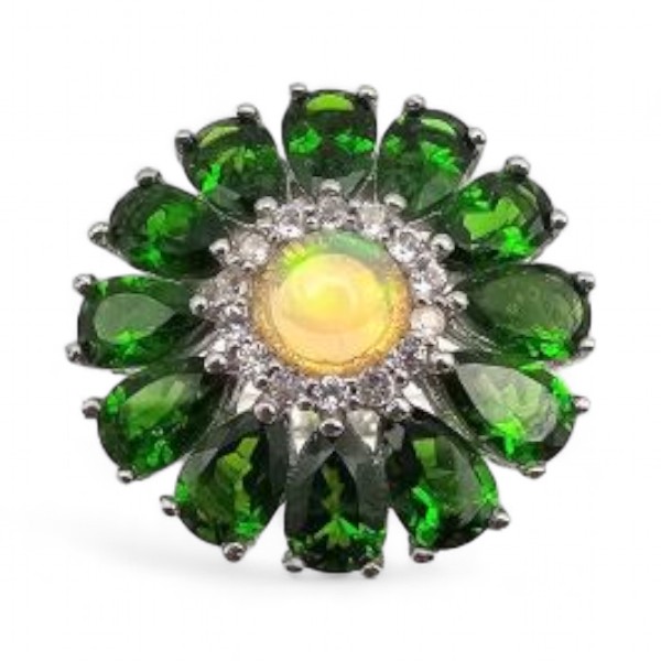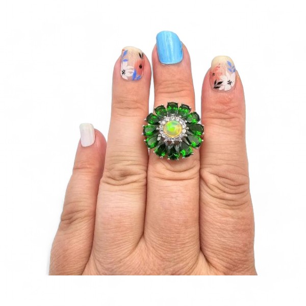“KH Kit Heath” Chrysoprase Opal Sterling Silver Cocktail Ring Sz. 7.75, 6.1 G