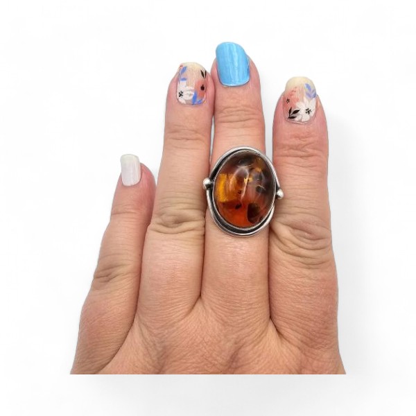 Amber Sterling Silver Ring Sz. 8.25 9.5 G