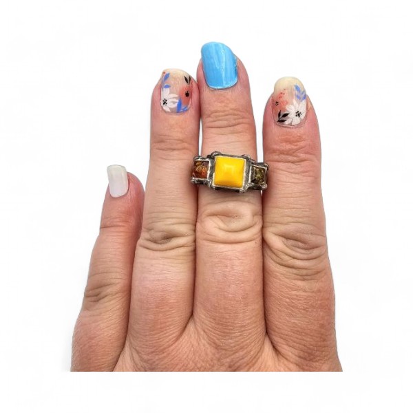 Amber Butterscotch Amber Sterling Silver Ring Sz. 6 6.4 G