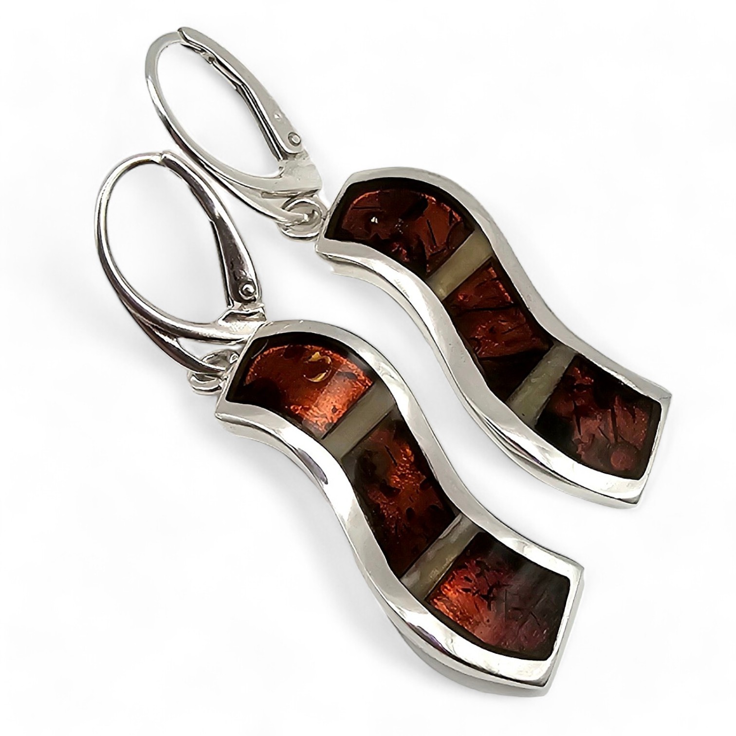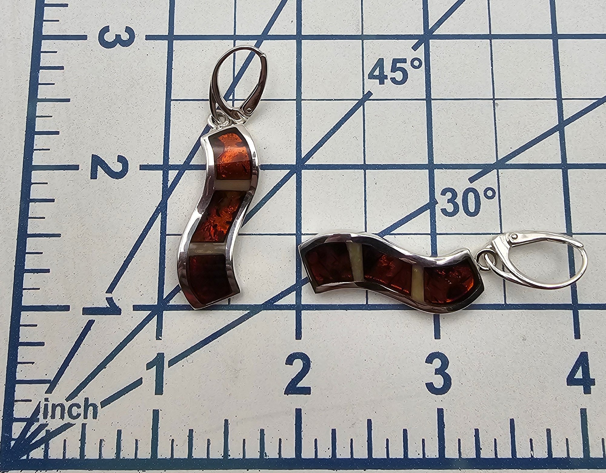 New Great High Quality Poland Amber Honey Amber Sterling Silver Wave Dangle Earrings 12.5 G