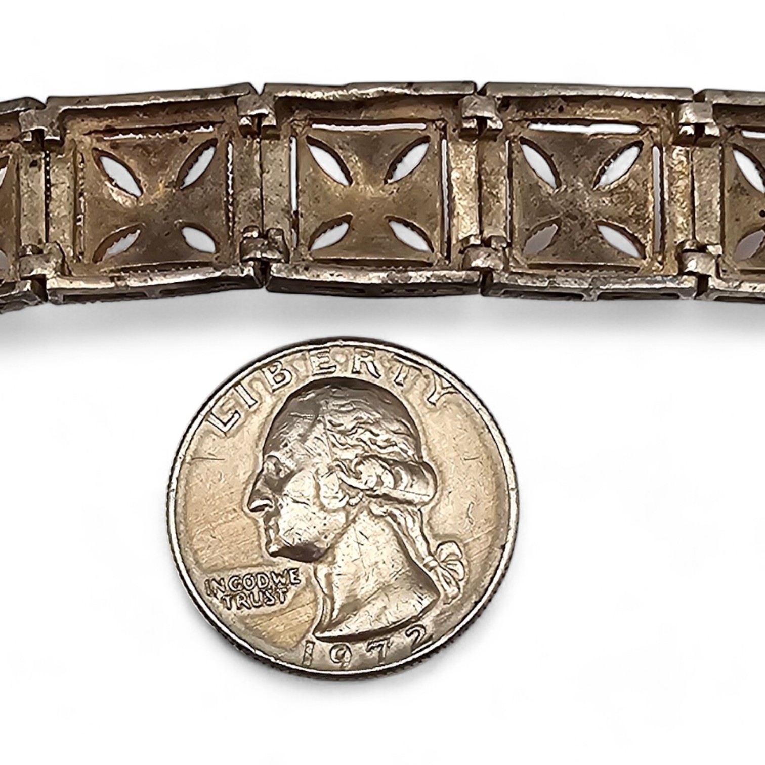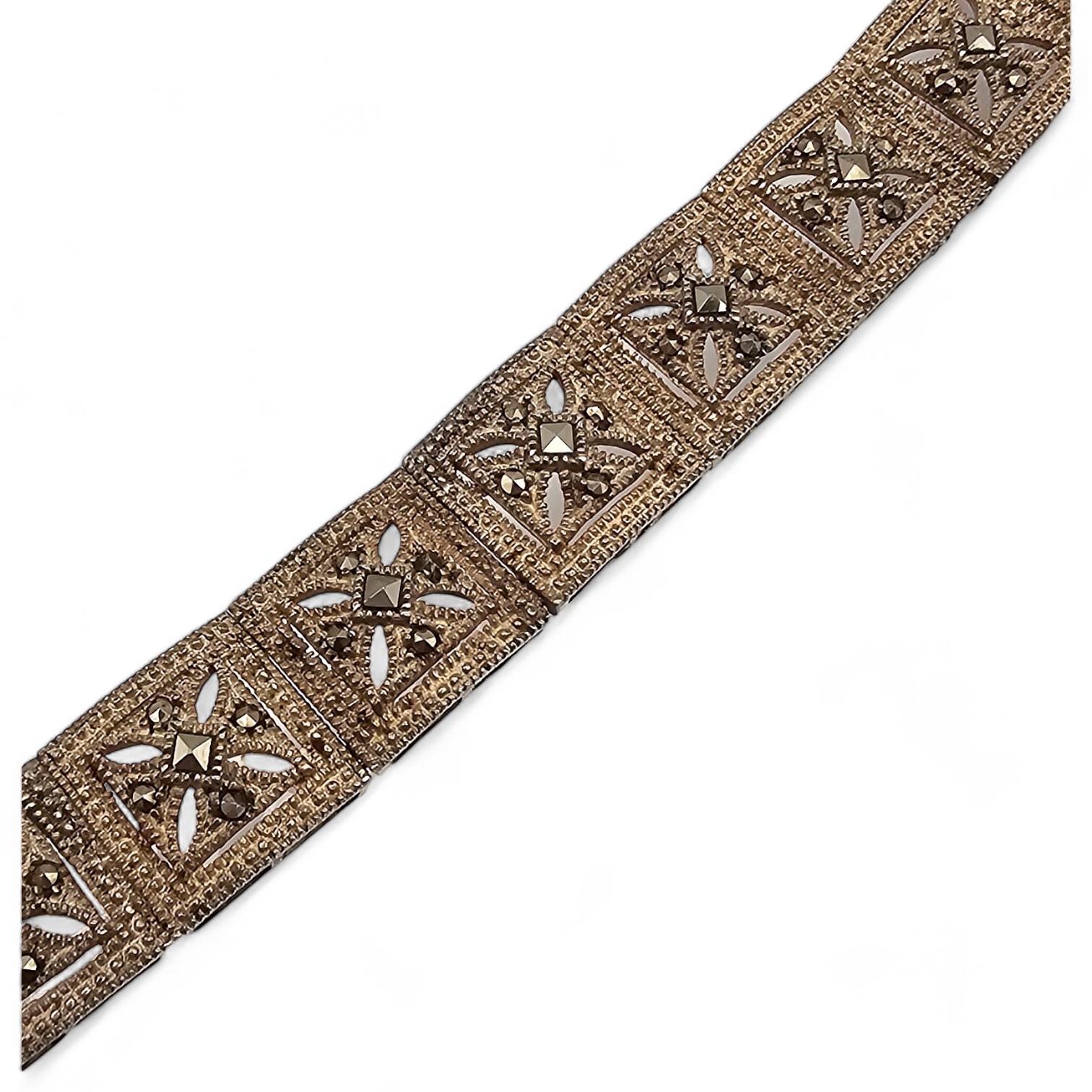 Marcasite Sterling Silver Panel Bracelet 28.4 G