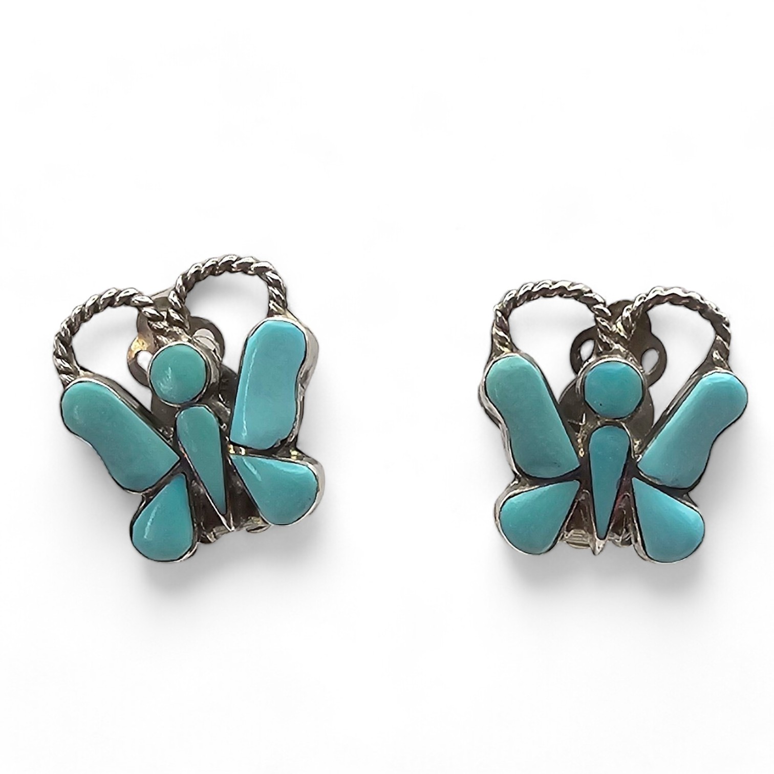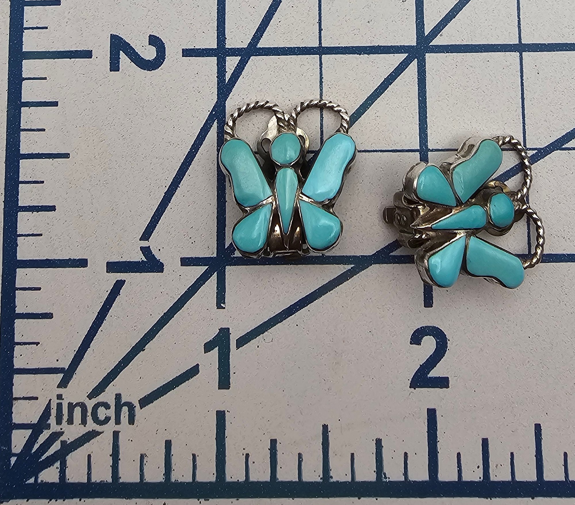 Turquoise Sterling Silver Butterfly Earrings 4.8 G