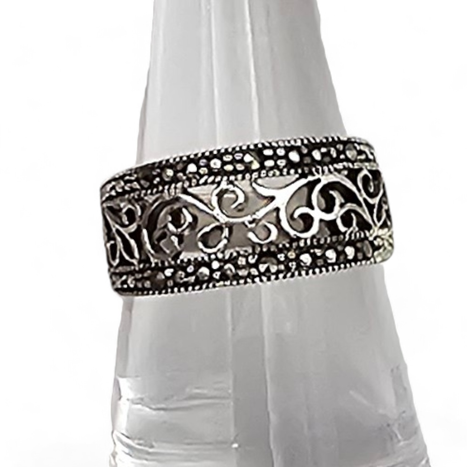 CW Marcasite Sterling Silver Ring Size 7.5 3 G