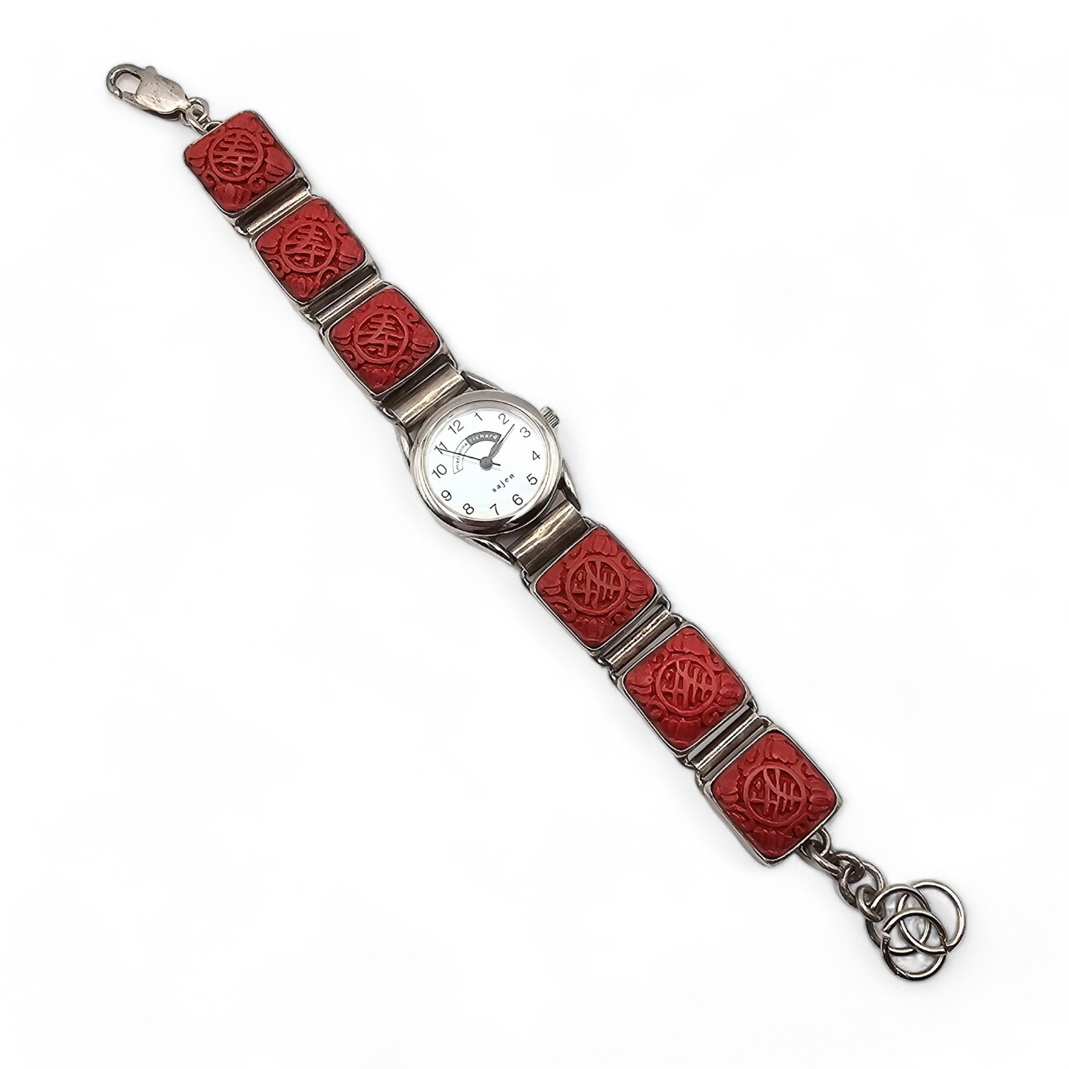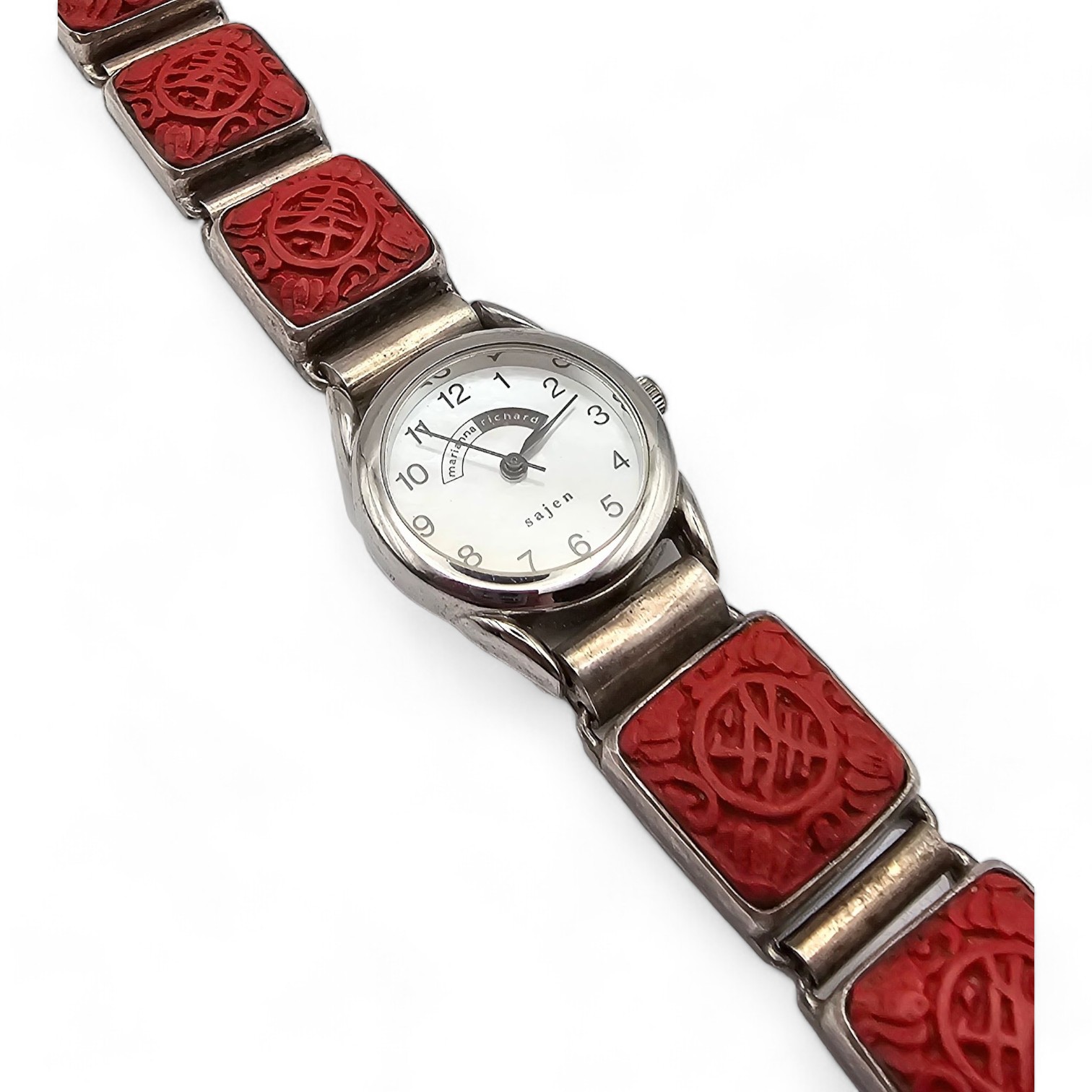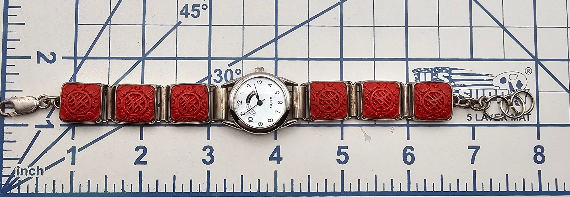 Siam Carved Coral Sterling Silver Sajen Watch 45.9 G