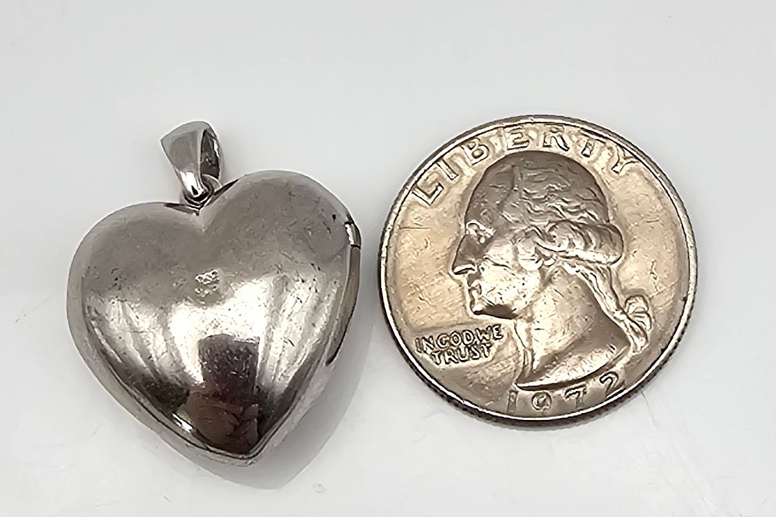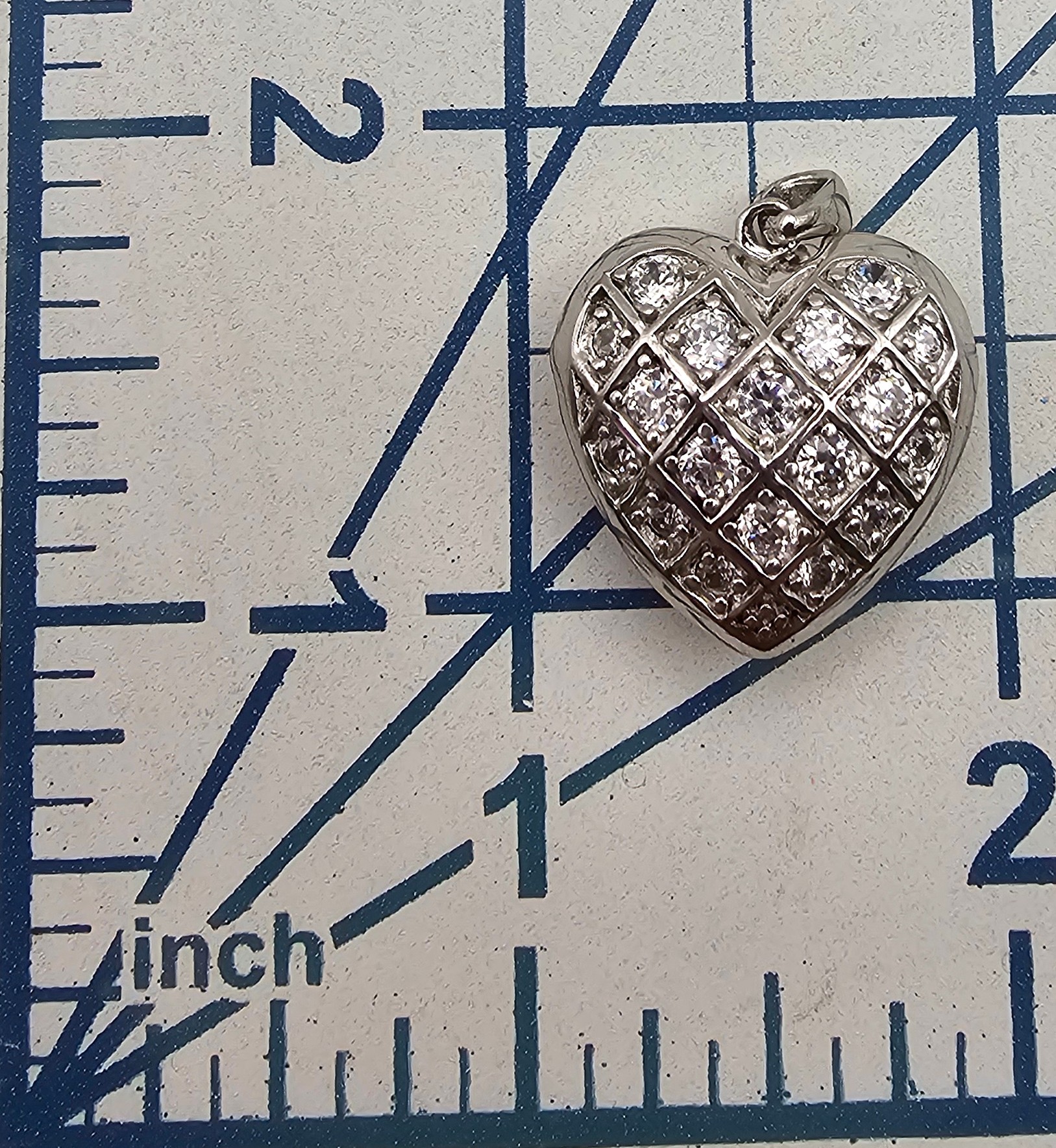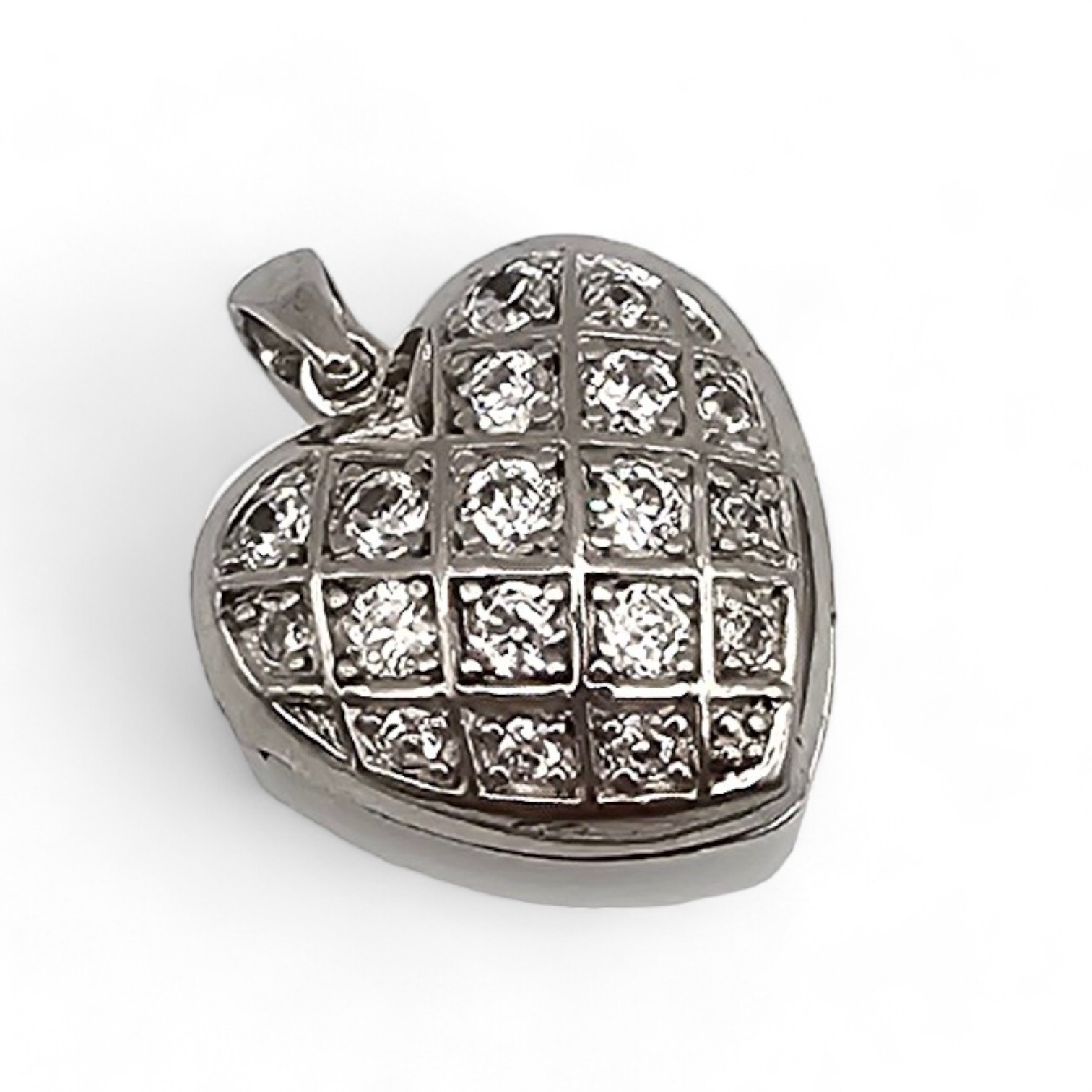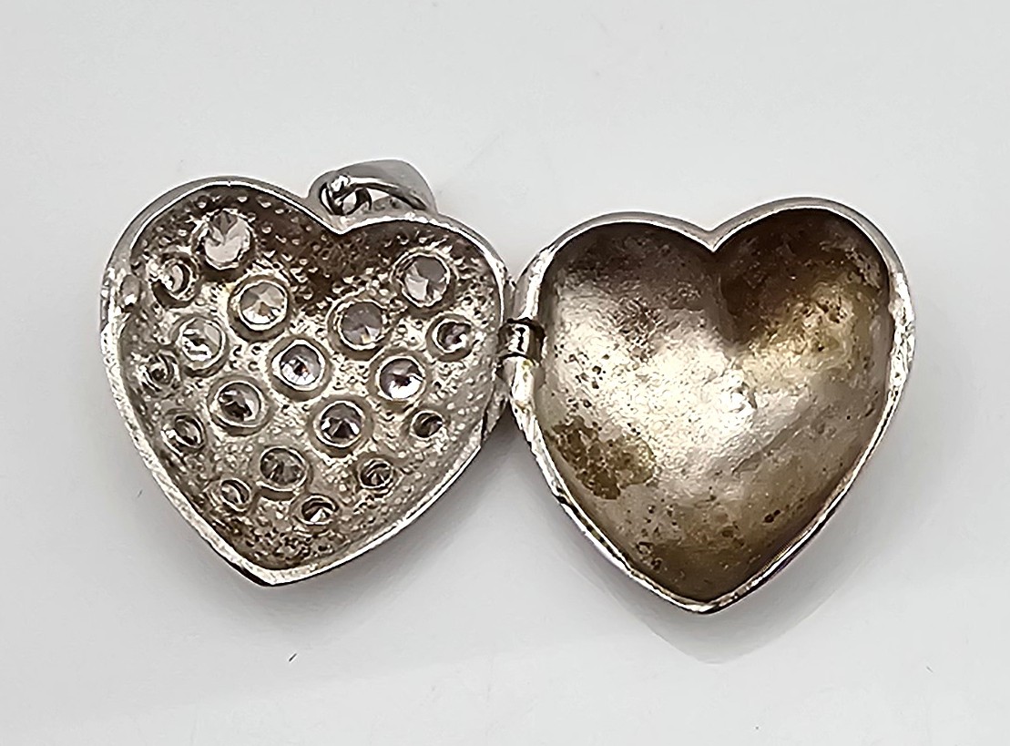 Rhinestone Sterling Silver Heart Locket Pendant 7.6 G