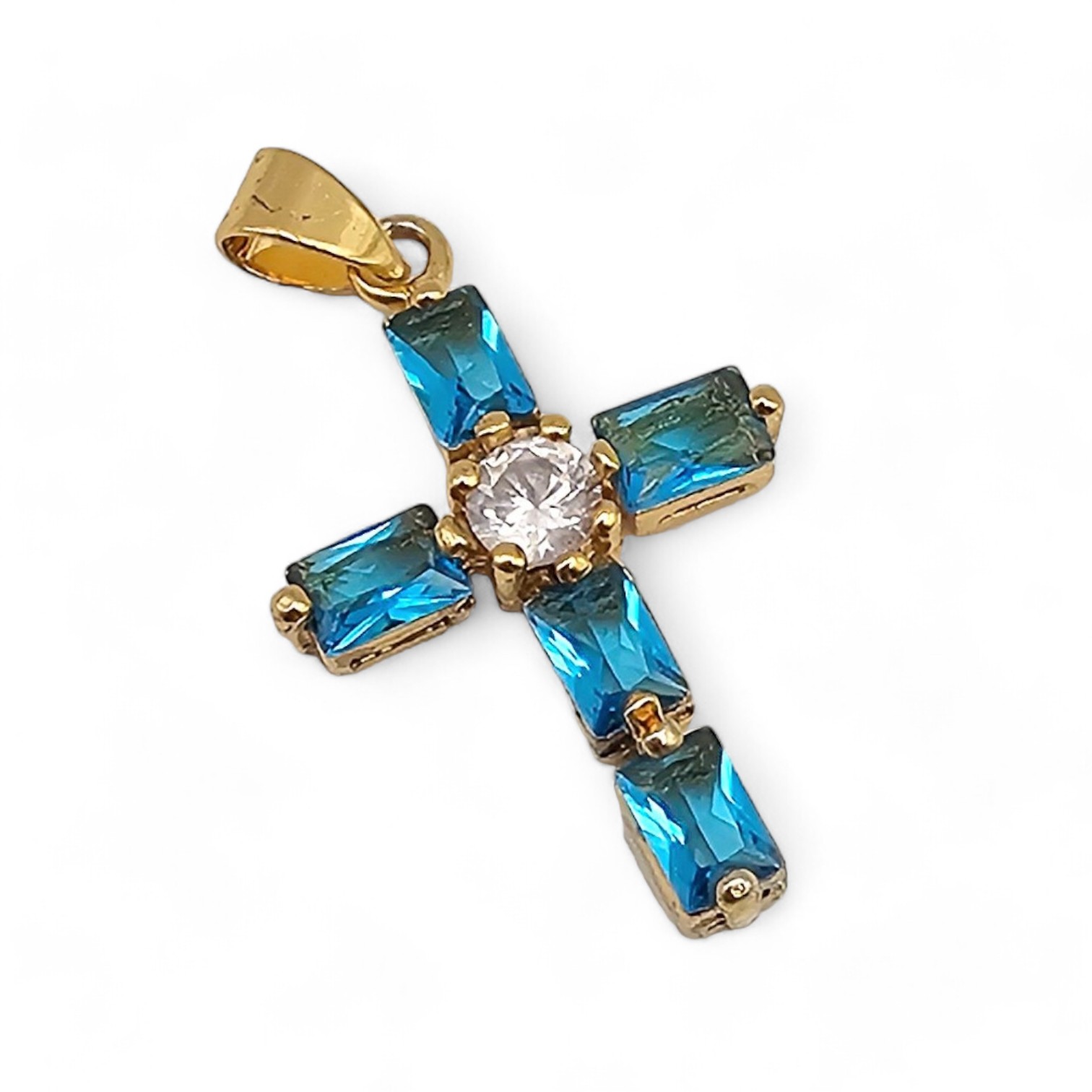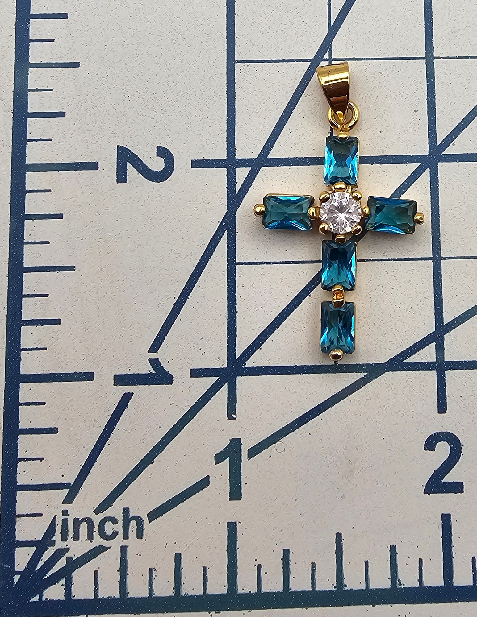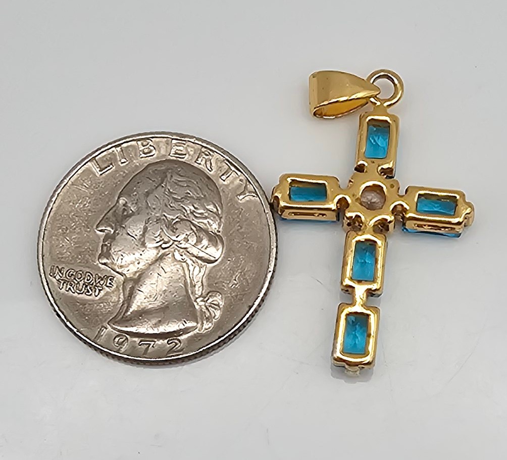 Rhinestone Gold Over Sterling Silver Cross Pendant 3 G