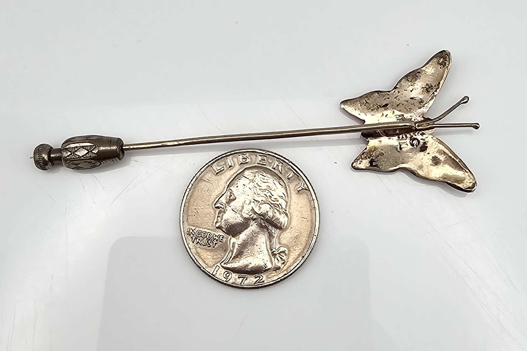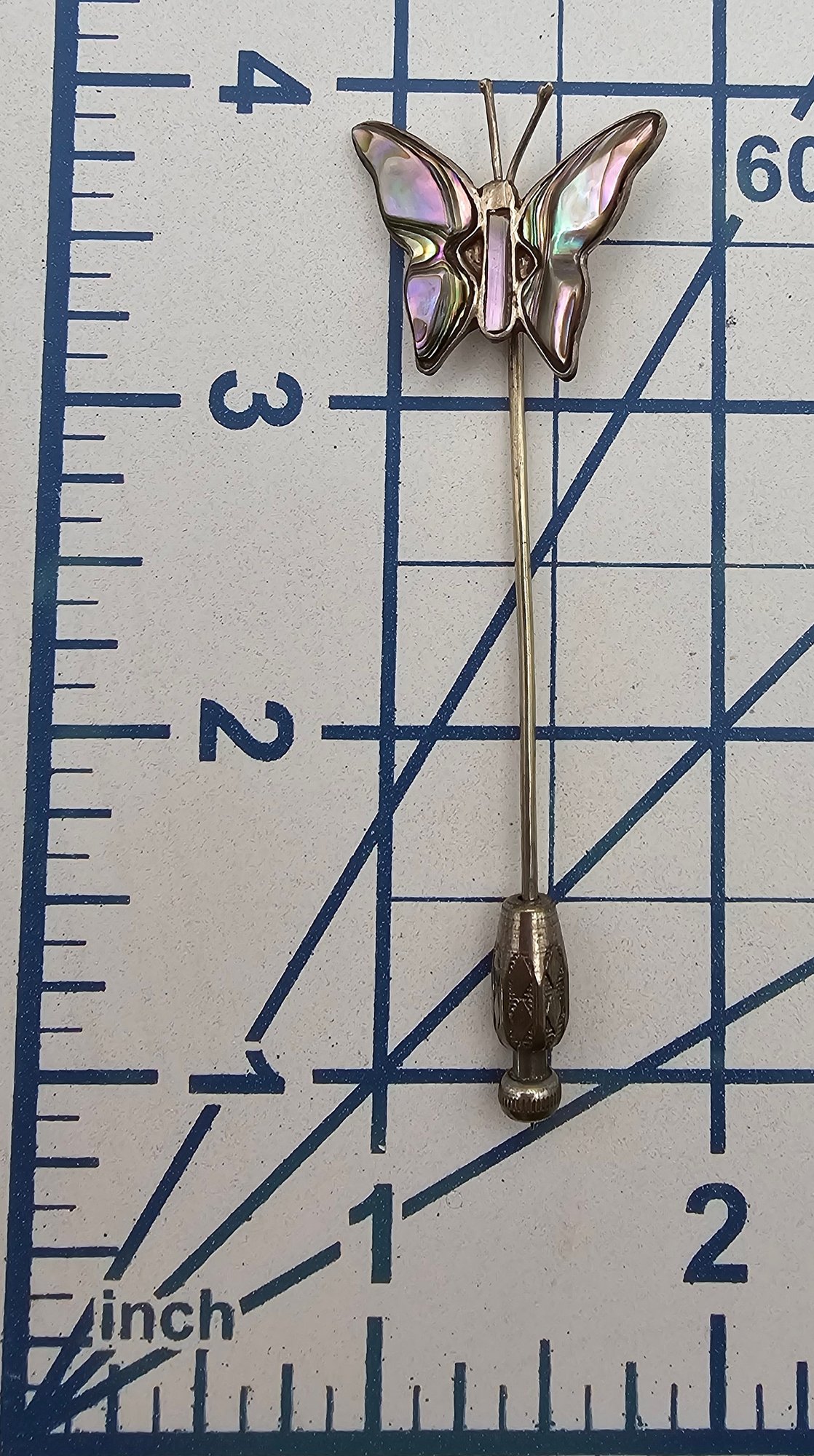 Mexico Abalone Sterling Silver Butterfly Stick Pin 3.4 G