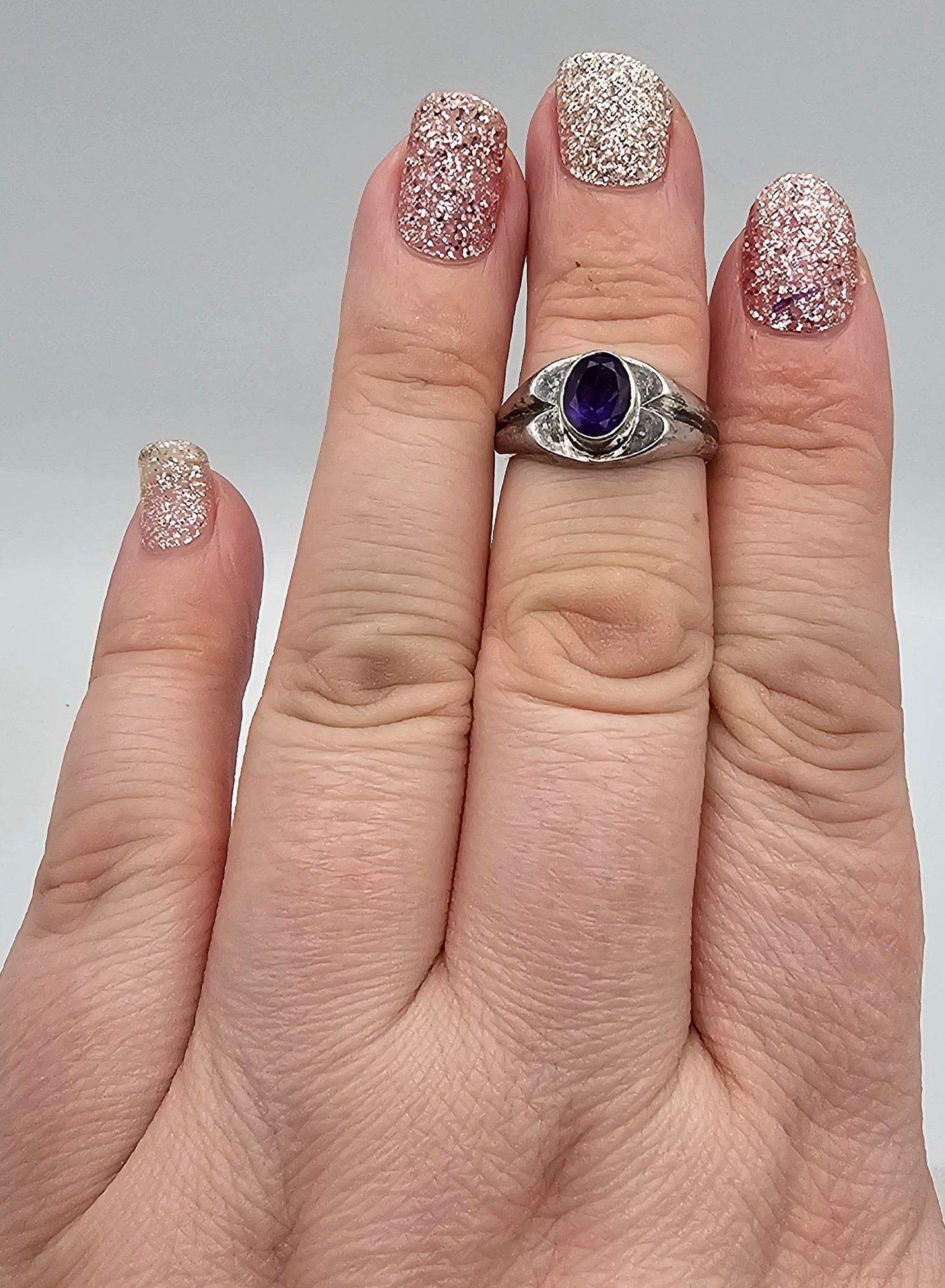 Amethyst Sterling Silver Cocktail Ring Size 6 4.6 G